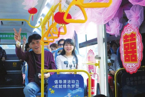 在活動(dòng)的出發(fā)點(diǎn),4輛裝扮一新的“情緣巴士”格外亮眼。這幾輛電動(dòng)空調(diào)公交車由內(nèi)至外都進(jìn)行了精心裝扮:車外貼上了幾個(gè)大紅喜字裝點(diǎn)車身,車內(nèi)用粉色絲綢扎成的花球布置著。宣布活動(dòng)開(kāi)始后,單身男女分批登上“情緣巴士”。上車時(shí),他們向投幣箱中放入一份“愛(ài)情宣言”,一段尋愛(ài)旅程隨即展開(kāi)。