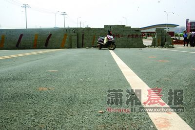 數(shù)月前,長(zhǎng)沙雨花區(qū)環(huán)保科技園金井路建成,但未交付使用。約一周前,金井路一十字路口南北向各砌了一堵灰色的墻,墻體周邊無(wú)任何警示標(biāo)識(shí)。