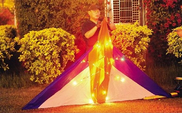 這位先生姓馬,剛剛那圈紅燈正是他放上天的夜光風(fēng)箏發(fā)出的
