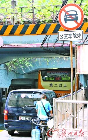 淘金北路屬于單行道,除了公交車,只允許車輛自南往北通行。在火車橋底,一個禁止車輛自北往南通行的交通標志矗立在路旁。此外,整條淘金北路的岔道都會標明“禁止左轉”。然而,市民經常看到車輛“南下”,卻無人攔截。