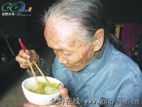 貴州普定縣張家村的李友珍老人今年整整103歲了。90多年前,老人逃荒從納雍來到張家村,從此與茶結(jié)下不解之緣——“染”上了喝茶吃茶的習(xí)慣。到了后來,老人甚至開始用茶當(dāng)菜泡飯吃,只要缺少了茶,老人就覺得沒胃口。老人說,只要一天不喝茶,她就感到胸口熱乎乎的難受,而且,要是沒有茶,她就吃不下飯。當(dāng)?shù)厝苏f,老人長壽,這和茶有極大的關(guān)系。昨日(3日),記者專程趕到張家村,找到了李友珍老人,以求解開老人的長壽秘訣。