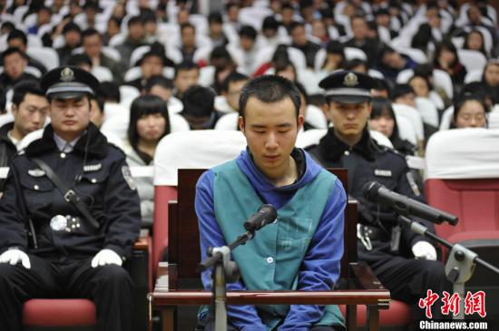 西安音樂學(xué)院大三學(xué)生藥家鑫開車撞傷人后又連刺數(shù)刀致對方死亡一案,于3月23日在西安市中級人民法院公開審理。圖為被告人在庭審現(xiàn)場。中新社發(fā) 冽瑋 攝