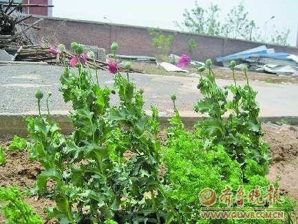5日中午,記者來(lái)到位于章丘大學(xué)城的濟(jì)南工程職業(yè)技術(shù)學(xué)院,看到在校園6號(hào)宿舍樓旁的一堵墻后面有一個(gè)小菜園,罌粟就種植在這個(gè)菜園里,已經(jīng)開(kāi)花結(jié)果。