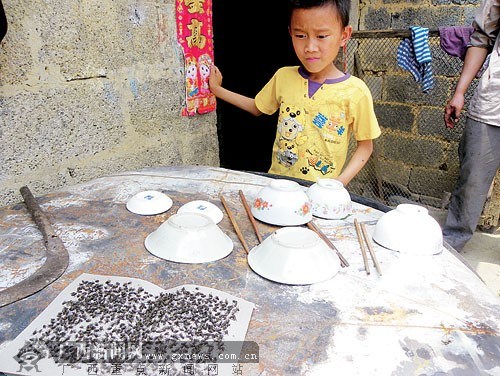 蒙漢標(biāo)家吃剩的飯菜會(huì)蓋在屋外的飯桌上,旁邊的粘蠅紙粘滿了蒼蠅。