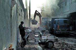 5月5日,大興區(qū)舊宮鎮(zhèn)南小街,一處路邊的違建正在被拆除。4月25日的大火,讓這條街道的所有違建都要被拆除,至昨日,對(duì)侵街占道違法建筑的拆除工作,已基本完成。據(jù)介紹,現(xiàn)在進(jìn)行的是“幫拆”,拆之前須取得戶主同意。戶主也可在規(guī)定期限內(nèi),自行拆除。本報(bào)記者 楊杰 攝