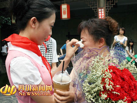 “太意外,太感動(dòng)了!”收到這份意外的母親節(jié)禮物,宋瑩的媽媽感動(dòng)得泣不成聲,“孩子太有心了,她說今天下午想出來走走,又提議說到錦里,沒有想到她給我安排了這個(gè)禮物!币慌裕弥嫦嗟挠慰蛣t紛紛羨慕地贊道,“這個(gè)女娃娃太懂事了!