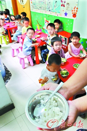 被曝光幼兒園的孩子們的午餐。