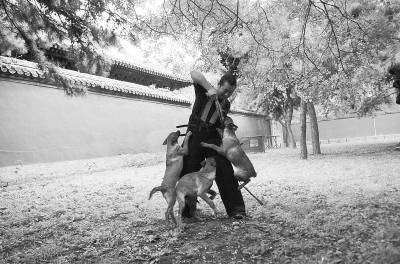 故宮西華門角落的紅墻內(nèi),關(guān)著十多條“大內(nèi)侍衛(wèi)”。狗吠中壯膽走過(guò)去,斑駁的墻上掛著“故宮博物館警犬隊(duì)”的門牌。幾只藏獒守在門口,齜牙咧嘴,震得鐵籠子直顫。