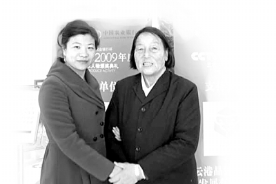 李珍(左)與全國勞模申紀蘭合影。(資料照片)