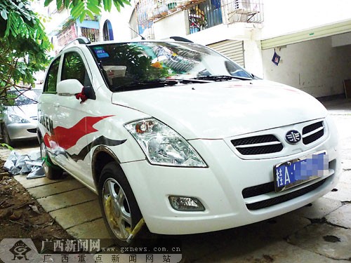 為防車(chē)被偷偷開(kāi)走,梁先生給小車(chē)上了鎖鏈。