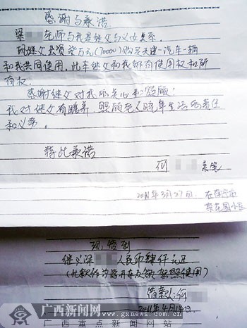 何某索要購(gòu)車(chē)款時(shí)立下的“感謝與承諾”。