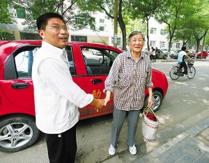 不是名車,不算富有……王曉輝,一位普普通通的市民,還有一輛與他一樣普通的私家車——奇瑞QQ。5月18日上午12時(shí)許,王曉輝用私家車把第100位老人送到了目的地。從2008年開始,王曉輝開著私家車在省城街道上尋覓,看到老人和行動(dòng)不便的人,便會(huì)免費(fèi)接送。如今,王曉輝希望成立一支“私家車愛心車隊(duì)”,希望能有更多的同道人加入。