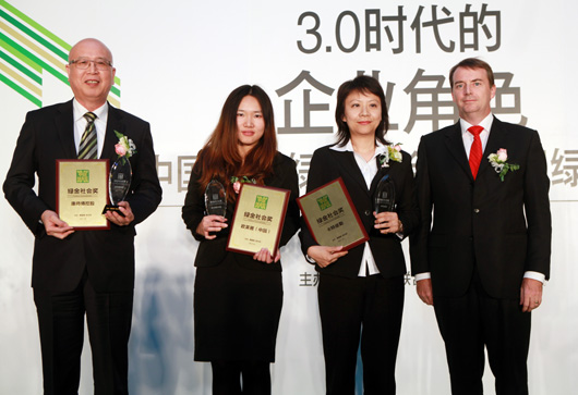康師傅華北區(qū)董事長張百清(左一)代表康師傅控股接受綠金社會獎