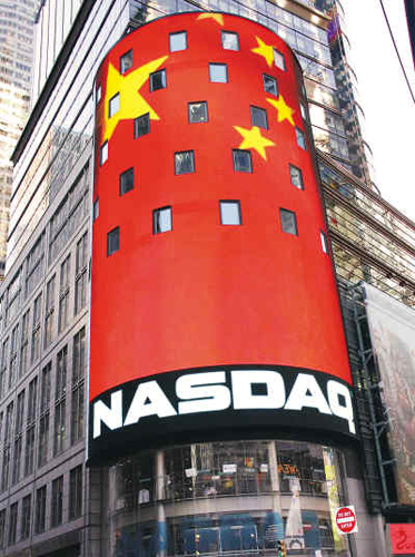 美國·紐約:紐約時報廣場納斯達克電子顯示屏上循環(huán)顯示中國五星紅旗,慶祝中國龍年。 新華社記者 王成云攝