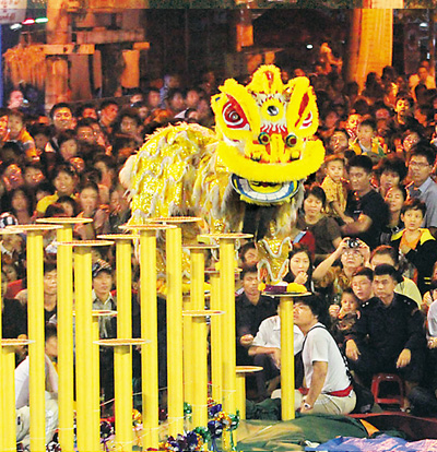 緬甸·仰光:唐人街1月24日舉行舞獅比賽。 吳 昂攝(新華社發(fā))
