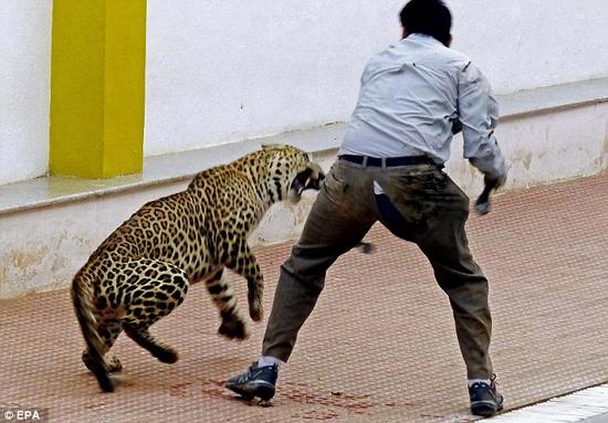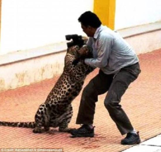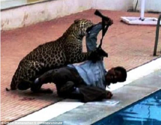2016年2月8日?qǐng)?bào)道,印度班加羅爾,一頭野生豹子突然奔入學(xué)校傷人,共有6人受不同程度傷害。其中一名動(dòng)物學(xué)家遭到突然攻擊,該男子拿起望遠(yuǎn)鏡搏斗這一瞬間被拍攝下來(lái)。
