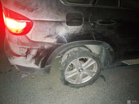 大年初四凌晨零點,浙江高速交警衢州支隊杭金衢高速窯上卡點大隊民警正在崗?fù)?zhí)勤,突然聽到江西方向開來一輛轎車發(fā)出疑似坦克聲音。執(zhí)勤民警馬上指 揮車輛靠邊停下。走近一看被眼前看到一幕驚呆了,這輛浙J號牌的寶馬小車右后胎只剩下車轱轆,剛才發(fā)出坦克聲音就是鋁合金鋼圈摩擦地面發(fā)出的。
