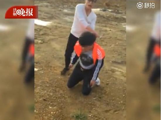 近日,一條暴力視頻流傳網(wǎng)絡(luò),視頻中一名20歲左右的男子被迫跪在地上,3名同齡男子將其圍住,其中兩人對其輪番毆打,掌摑、踢打,白色T恤男子下手尤為狠重,幾次將其打倒,踹在臉上。被打男子一直示弱,連連道歉。(記者 溫如軍)