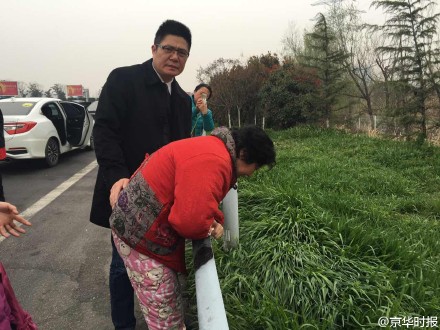 李征琴所乘的車輛突然停下,李征琴下車后,扶著高速護欄向外嘔吐。