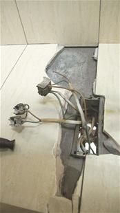 圖為:村民家中墻壁及開關(guān)均被雷擊壞