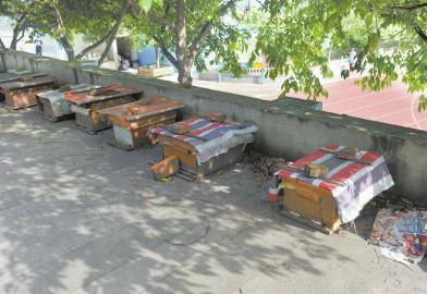 車棚頂上養(yǎng)的蜜蜂曾蜇傷多位小區(qū)居民。