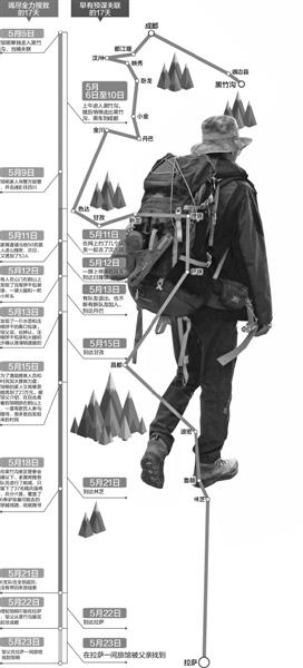 從5月6日至23日,鄒明與家人整整失聯(lián)了17天。當景區(qū)及家人組織大量人力物力在黑竹溝景區(qū)大范圍搜救,并幾乎感到絕望的時候,他卻出現(xiàn)在了拉薩。那么他到底何時離開黑竹溝?這17天他到底去了哪些地方?怎么最后又到了拉薩?