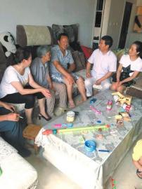 社區(qū)工作人員看望李明(左三)和他的母親(左二)。社區(qū)供圖