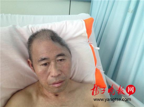 48歲的電焊工楊以華在一次做活時(shí),不慎受傷倒地,頭部和身上多處受傷,手術(shù)后左邊腦地凹下去了一大塊,相當(dāng)于一小半腦袋沒了,小他20歲的妻子在照顧他一周后,離開了再也沒有回來。27日上午,在宿遷市人民醫(yī)院外科一間病房內(nèi),經(jīng)過幾個(gè)月的治療,楊以華已恢復(fù)了部分意識(shí),但還不能說話,一提起他的妻子,他忍不住嗚嗚哭出了聲。