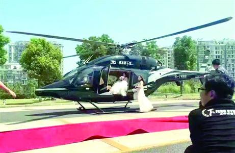 有圍觀市民表示,這對(duì)新人用直升機(jī)迎親,是為了討口彩“緣分從天而降”。