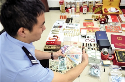 在田某位于南坪某高檔小區(qū)的家中,民警搜出了大量外幣、紀(jì)念幣、高檔手表、名牌煙酒、首飾等物品,不少物品與報(bào)案人所報(bào)被盜物品吻合。
