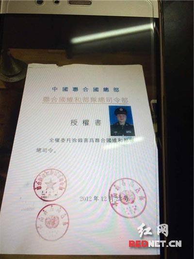 錢(qián)某偽造的維和部隊(duì)司令員授權(quán)書(shū)。