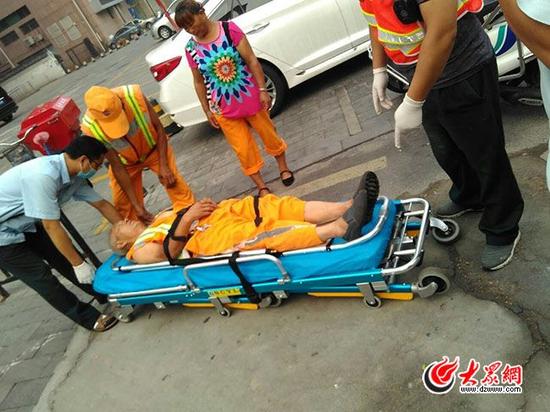 今天早晨,正在歷城區(qū)洪家樓附近清掃路上積水的環(huán)衛(wèi)工顧明海被4名賣早點(diǎn)的商販打傷。環(huán)衛(wèi)局工作人員介紹,打人的兩男兩女都是30多歲的年輕人,他們指責(zé)顧明海打掃積水影響了他們賣早點(diǎn),言語不遜并將把環(huán)衛(wèi)工顧明海打傷,顧明海頭部出血。目前打人的4名商販已被帶到派出所,環(huán)衛(wèi)工老顧稱被打后感到頭暈、惡心,正在濟(jì)南市中心醫(yī)院急診接受治療。