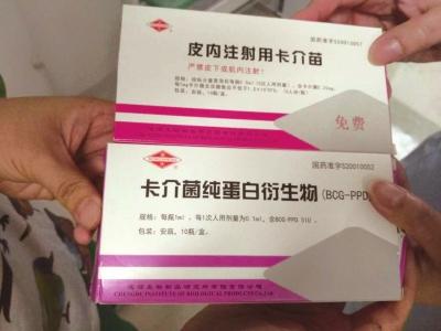 萬(wàn)女士說(shuō),為接種該疫苗,小寶7月25日曾在該院做了皮試,此后沒(méi)有異常。7月28日,醫(yī)生看了皮試結(jié)果表示可以接種,隨后,護(hù)士在小寶的左大臂接種疫苗。家屬提供的照片顯示,注射的疫苗為成都生物制品研究所有限責(zé)任公司的“卡介菌純蛋白衍生物”。