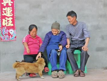 范祥芳和丈夫陳才陪婆婆聊天