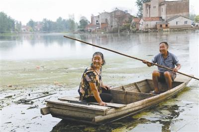 閆斗菊和一袋蛇皮袋行李、兩箱方便面,擠在一只不到1米寬的小船上。岸邊的人輕輕一推,船夫用桿一撐,搖搖晃晃地,朝著水澤深處的家出發(fā)了。