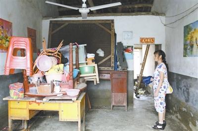 閆斗菊看著被洪水洗過的家。 本報記者 周有強攝