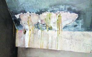 棚頂露出個洞,水泥掉滿地。