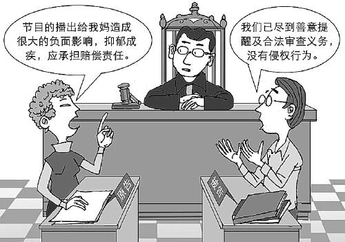一名年近花甲的老太,應(yīng)一家文化傳播公司邀請(qǐng)上電視講述家庭糾葛,節(jié)目播出后遭到他人非議,承受巨大壓力,后以剪輯后的節(jié)目?jī)?nèi)容與錄制過(guò)程要反映的問(wèn)題有較大出入,節(jié)目的播出給其造成很大的負(fù)面影響,致其抑郁成疾等為由,將文化傳播公司告上了法庭,索賠200余萬(wàn)元。文化傳播公司認(rèn)為,在節(jié)目攝制中已盡到善意提醒及合法審查義務(wù),對(duì)受訪者沒(méi)有侵權(quán)行為,不應(yīng)承擔(dān)賠償責(zé)任。那么,上電視自揭“家丑”、不堪壓力抑郁成疾,這個(gè)責(zé)任該誰(shuí)負(fù)?