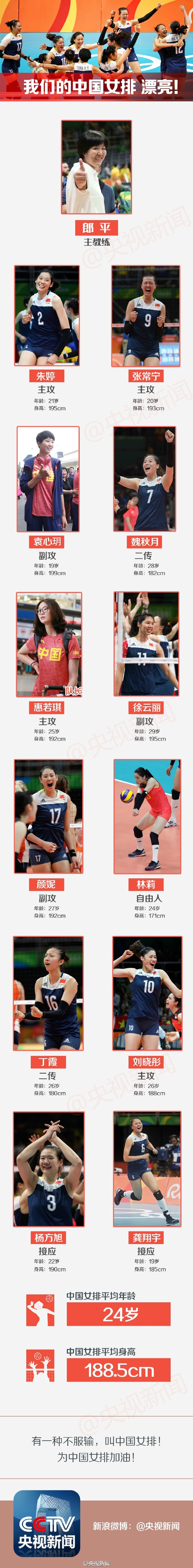 8月21日,里約奧運(yùn)女排決賽,中國(guó)女排以3-1逆轉(zhuǎn)戰(zhàn)勝塞爾維亞奪得冠軍。這群平均年齡24歲,平均身高188.5cm的姑娘們,賽場(chǎng)上,她們是巾幗英雄;生活里,她們和大多女孩一樣,愛美、乖巧伶俐。下面這張圖就是我們的奧運(yùn)冠軍門出征時(shí)的模樣: