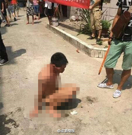 視頻顯示,多人沖進(jìn)一屋內(nèi),將一全身赤裸的男子拼命拖出門(mén)外,隨后多人對(duì)男子實(shí)施踢打,后者癱倒在地,其間沒(méi)有反抗;周邊,多人拉著寫(xiě)有“性侵動(dòng)物”等字樣的橫幅,疑似譴責(zé)被打男子。