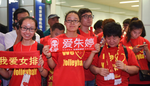 央視網(wǎng)消息:23日晚約十點(diǎn),載譽(yù)歸來的中國女排抵達(dá)北京首都國際機(jī)場(chǎng),現(xiàn)場(chǎng)接機(jī)球迷在見到女排隊(duì)伍后陷入沸騰。原定北京時(shí)間晚上七點(diǎn)四十落地的中國女排,因飛機(jī)晚點(diǎn)約兩個(gè)小時(shí),在晚上十點(diǎn)左右才抵達(dá)機(jī)場(chǎng)。此后,經(jīng)過約一個(gè)小時(shí)的等待,現(xiàn)場(chǎng)球迷和媒體終于見到了女排姑娘們的面容。當(dāng)主教練郎平及其弟子朱婷、惠若琪等人出現(xiàn)在機(jī)場(chǎng)到達(dá)通道時(shí),粉絲們大聲喊起口號(hào)、高舉橫幅、海報(bào)、鮮花,歡迎女排勝利歸來。