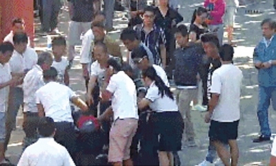 家屬與醫(yī)院保安起沖突時有人倒地。視頻截圖
