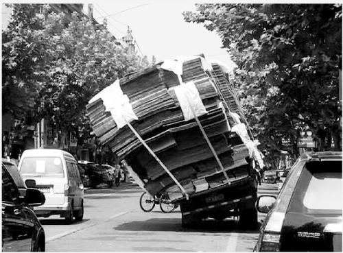 8月27日,在浙江省金華市街頭,筆者看到一輛嚴重超載的三輪車。車上的貨物已經(jīng)嚴重傾斜,眼看車就要被壓翻了。這樣還敢上路,駕駛員的心理素質(zhì)很強大,但交通安全意識未免太過薄弱。