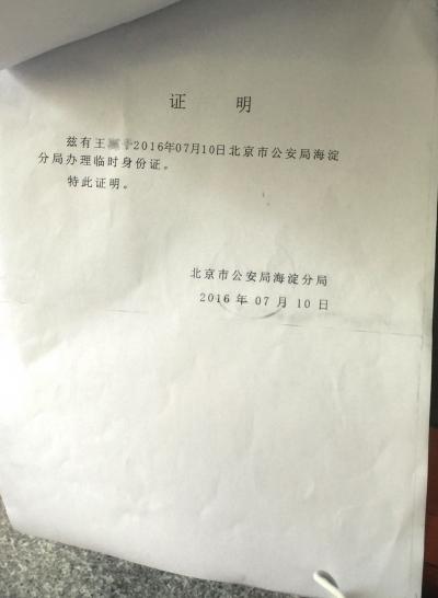 臨時(shí)身份證有效期超過(guò)90天。證明中未填寫(xiě)辦理人的身份證號(hào)。當(dāng)事人供圖
