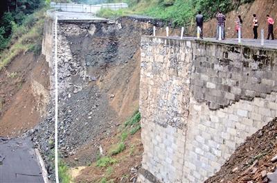 昨日,記者在武務路垮塌處看到,70米長省道被撕出10米寬裂口,下方是百米深淵。“如果沒有饒叔,后果不堪設想!焙瓶卩l(xiāng)黨委書記文靜稱,經當時政府干部粗略清點,饒叔當晚攔下了50輛車。