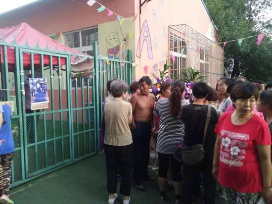 9月8日下午,幼兒園外聚集了大量圍觀群眾