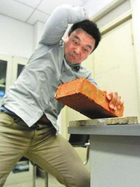 圖為四川大學(xué)計(jì)算機(jī)科學(xué)系的年輕教師魏驍勇“徒手劈磚”。
