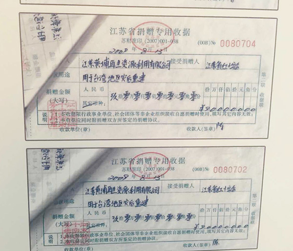 陳光標(biāo)準(zhǔn)備公布的捐款票據(jù)。