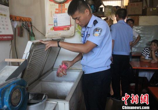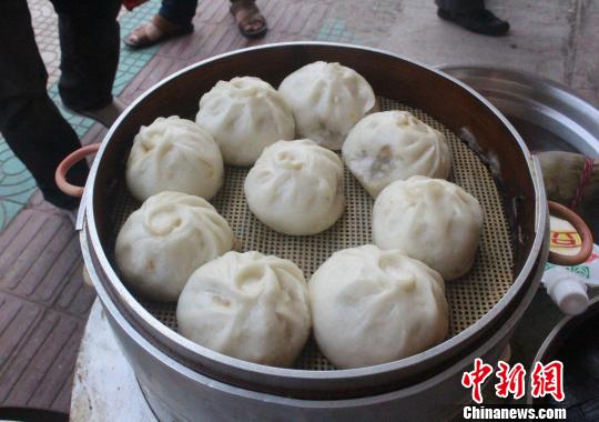 圖為:當?shù)卦绮偷晁鄣奶砑恿撕X“泡打粉”的包子。 義烏警方供圖
