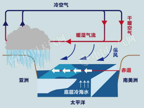 “拉尼娜”(LaNina)一詞來源于西班牙語,原意為“小女孩”,指赤道中東太平洋海面溫度持續(xù)異常偏冷的現(xiàn)象。如果海溫距平3個月滑動平均值低于-0.5℃,且至少持續(xù)5個月,則判定為一次拉尼娜事件。
